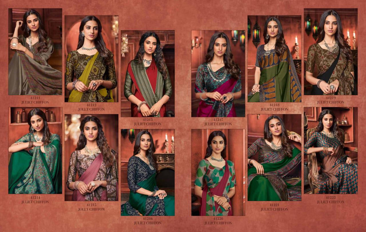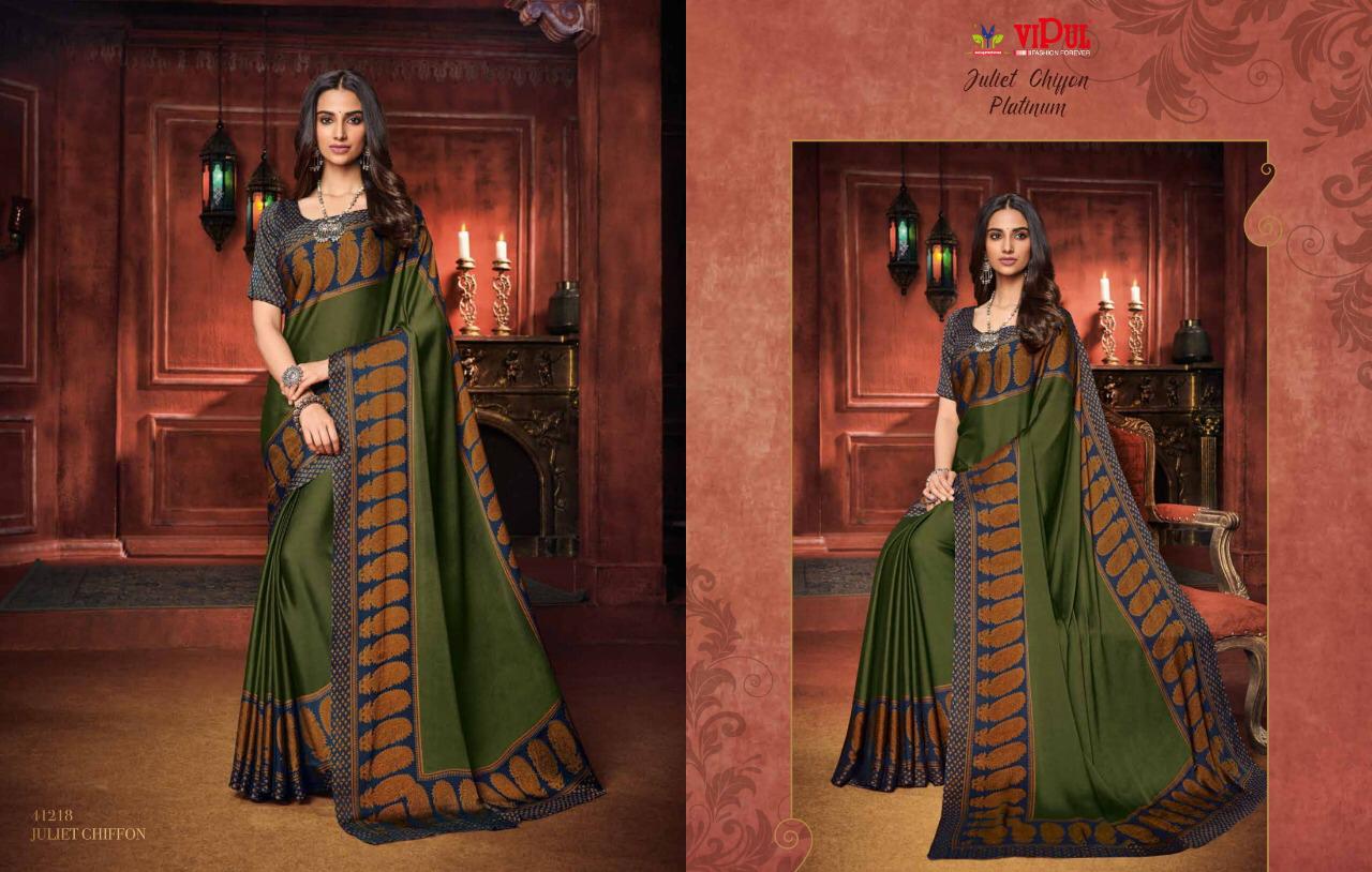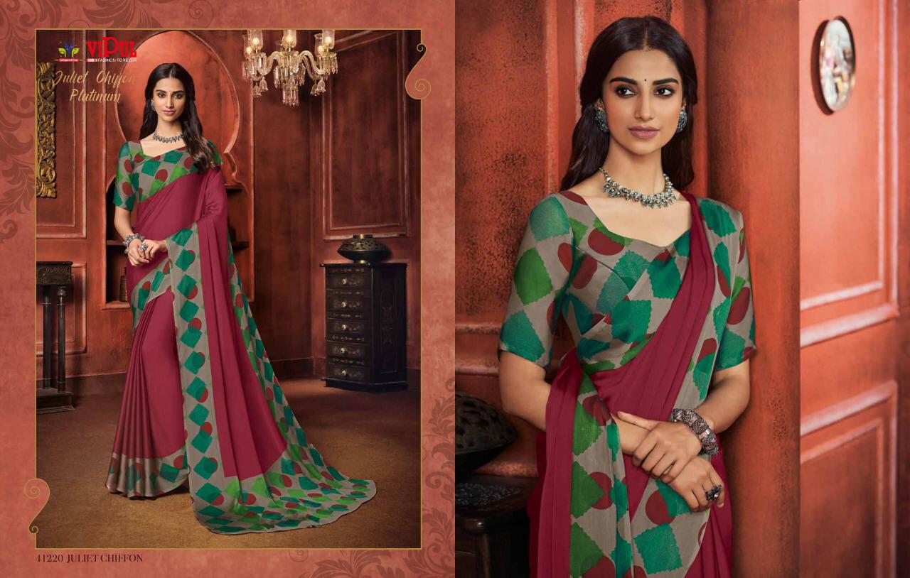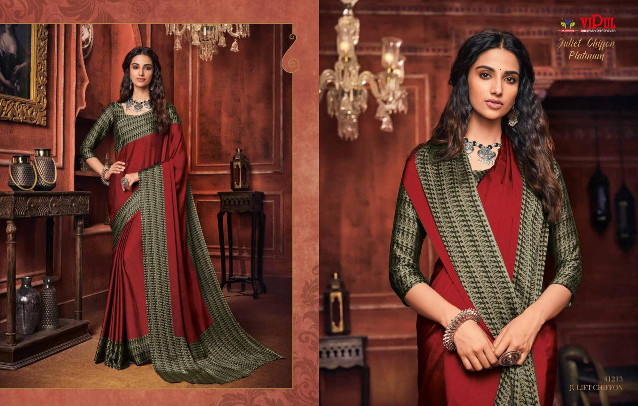 Other Details: | VIPUL Presents – JULIET CHIFFON PLATINUM THE COLLECTION FROM INSPIRATION TO CREATION. RATE-516₹ 5%GST APPLICABLE SET TO SET DELIVERY 2 DAYS |