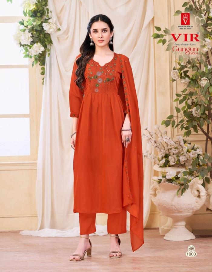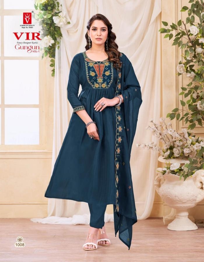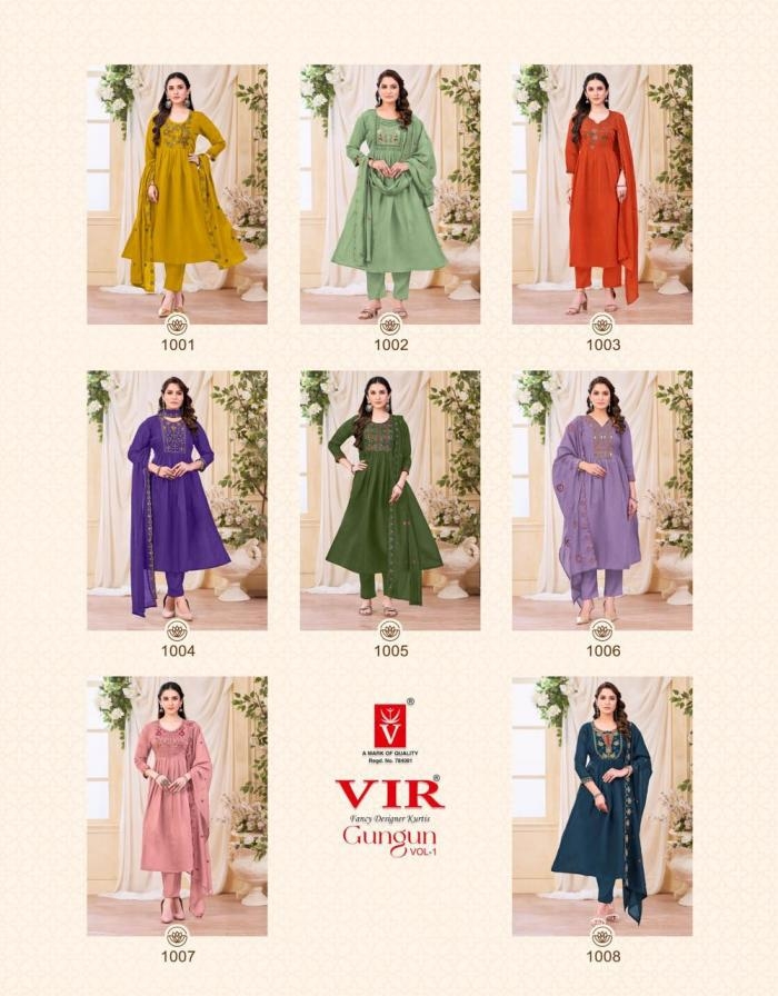 | Name: | Vir Gungun Vol 1 Series 1001-1008 Mul Chanderi Readymade Suit |