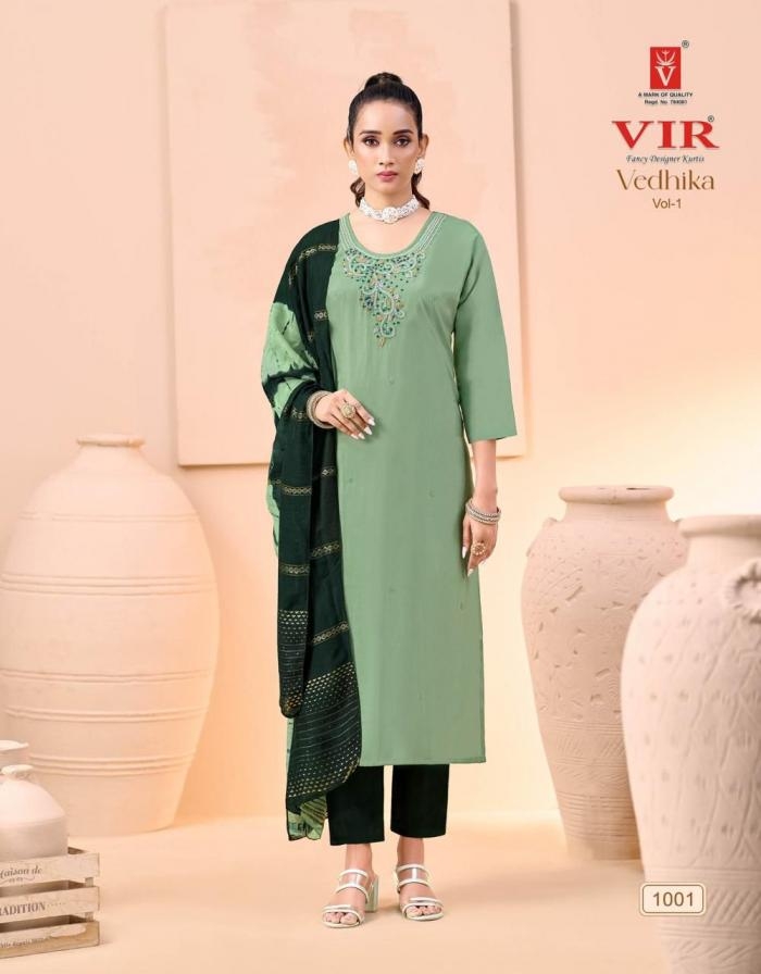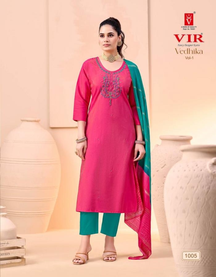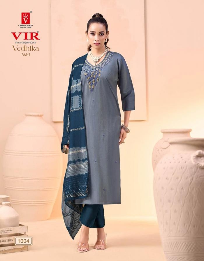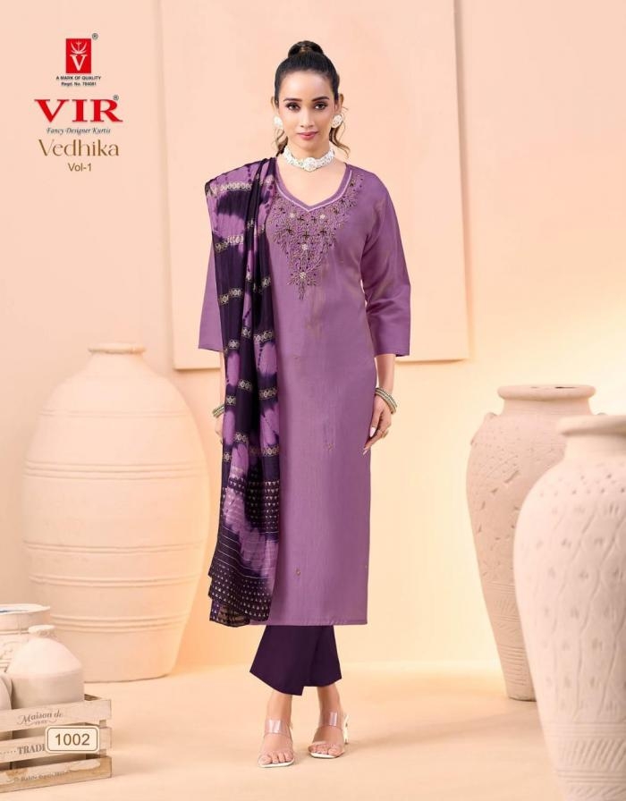 | Name: | Vir Vedhika Vol 1 Series 1001-1006 Shimmer Readymade Suit | |