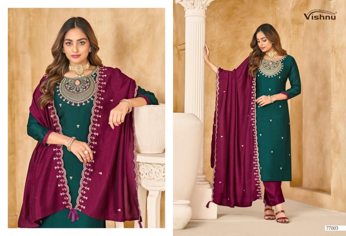| Name: | Vishnu Nazariya Series 77001-77012 Vichitra Silk Wholesale Suit | |