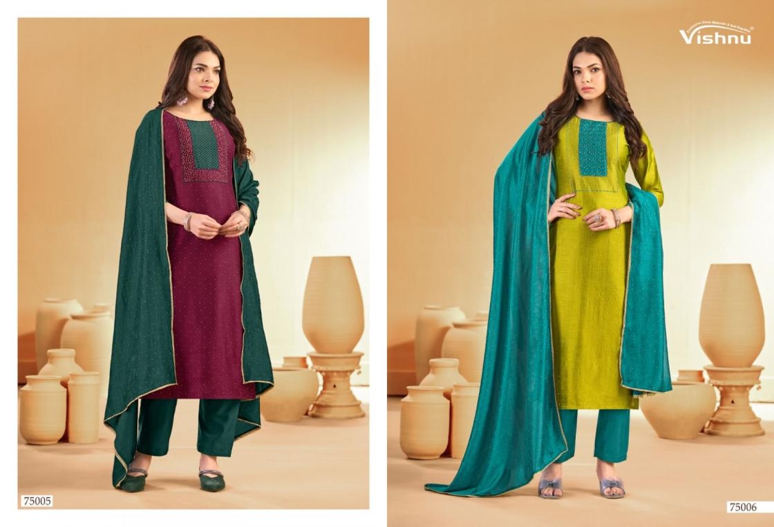 | Name: | Vishnu Swarnpankh Series 75001-75012 Vichitra Blooming Wholesale Suit | |