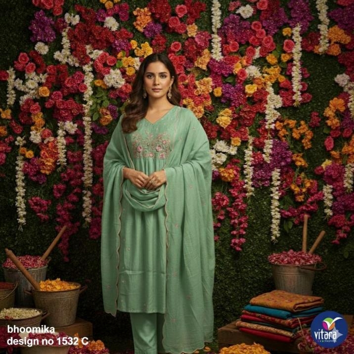 | Name: | Vitara Fashion Bhoomika 1532 A To C Mul Chanderi Fully Stitch Preety Combo Set Suit In Wholesale Surat |