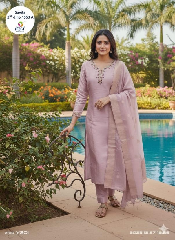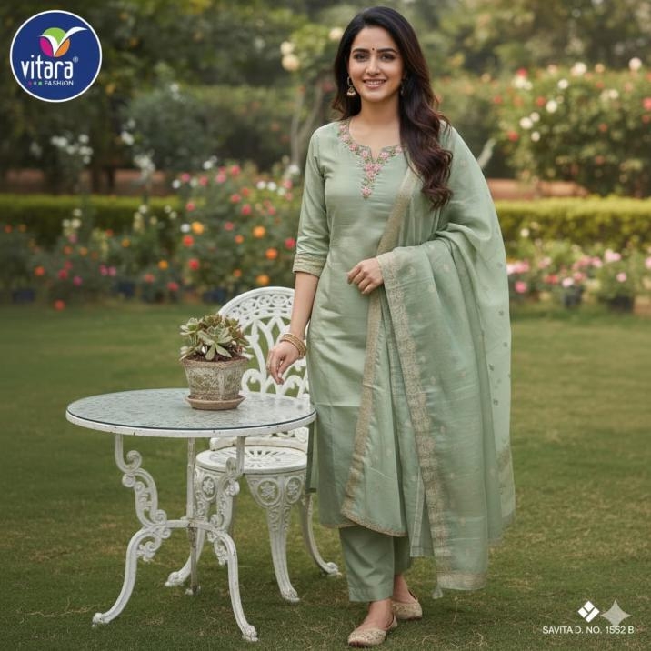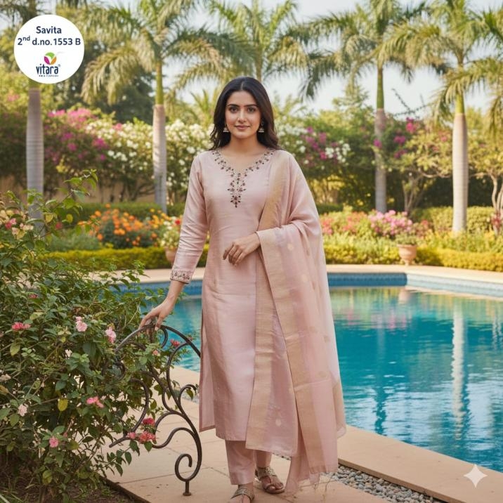 | Other Details: | .Vitara fashion launched pic & choose 3pcs Combo set Name - SAVITA-2 fabric🎀 *TOP-*pure viscos tissue simar with handwork 🏵️*Bottam-*-frenz crape * 🌻dupatta- heavy muslin jecrd 💥size - m to 2xl 🌟color- 2 RATE- 1180/- +gst ♻️*GST +5% ADD ON BILL AMT |