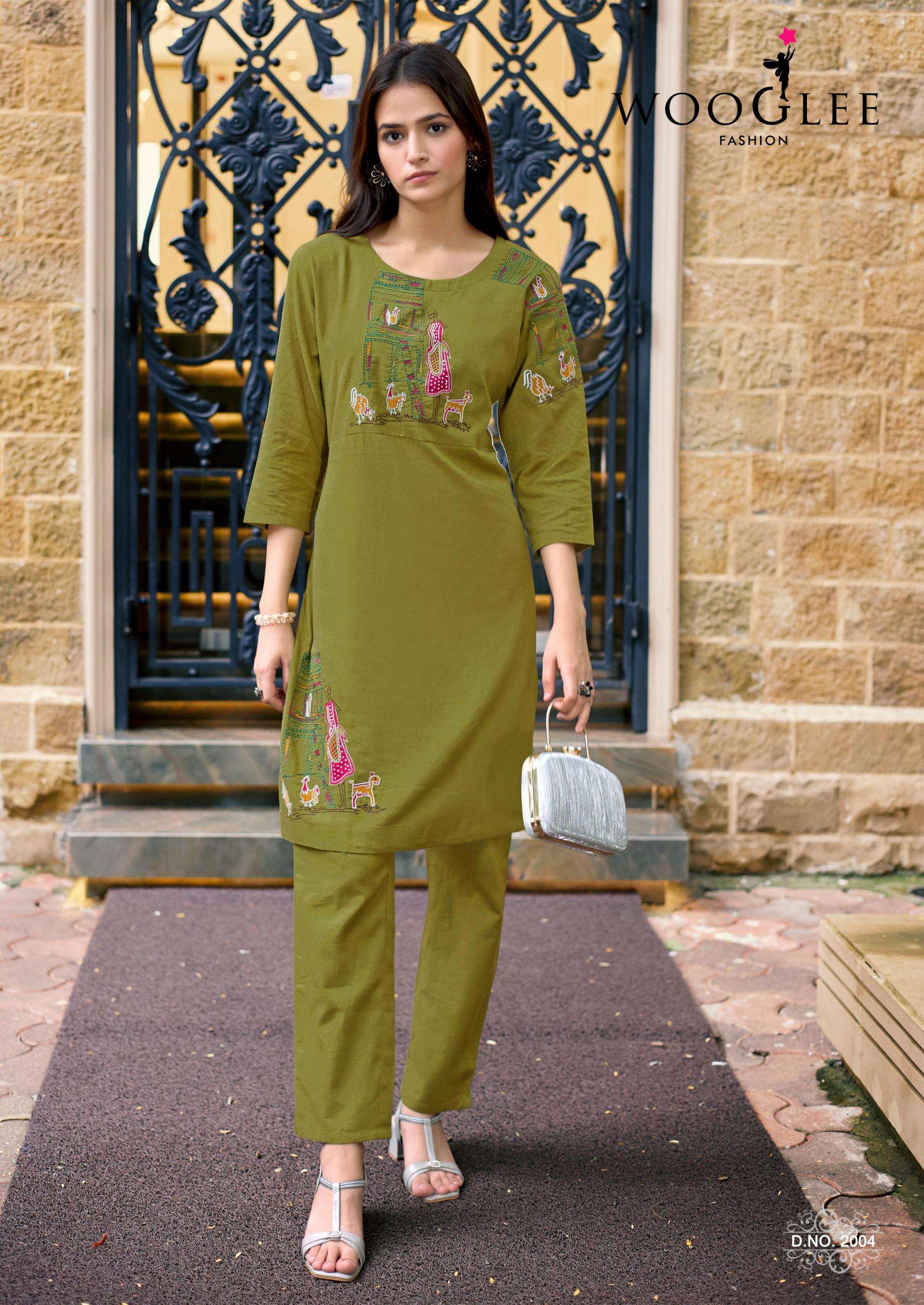 | Name: | Wooglee Shivangi Series 2001 To 2006 Cotton Flex Thread Work Readymade Kurti With Pant In Wholesale Surat |