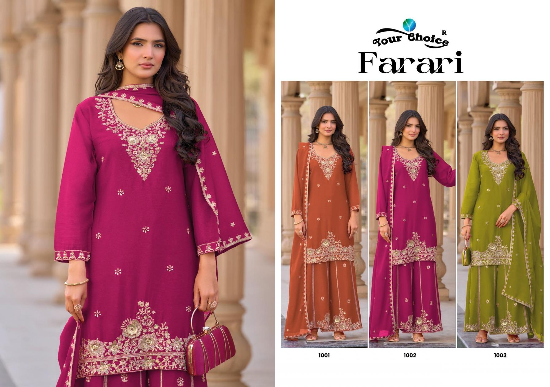 | Name: | Your Choice Farari Series 1001-1003 Chinon Wholesale Suit In Surat |