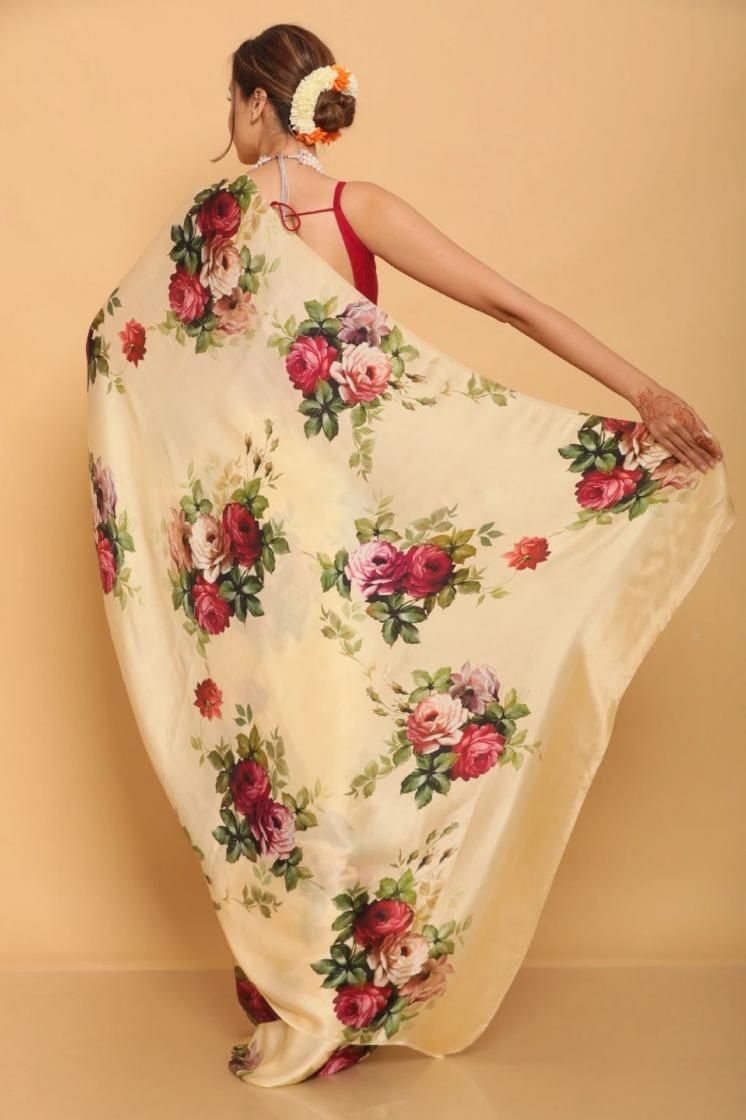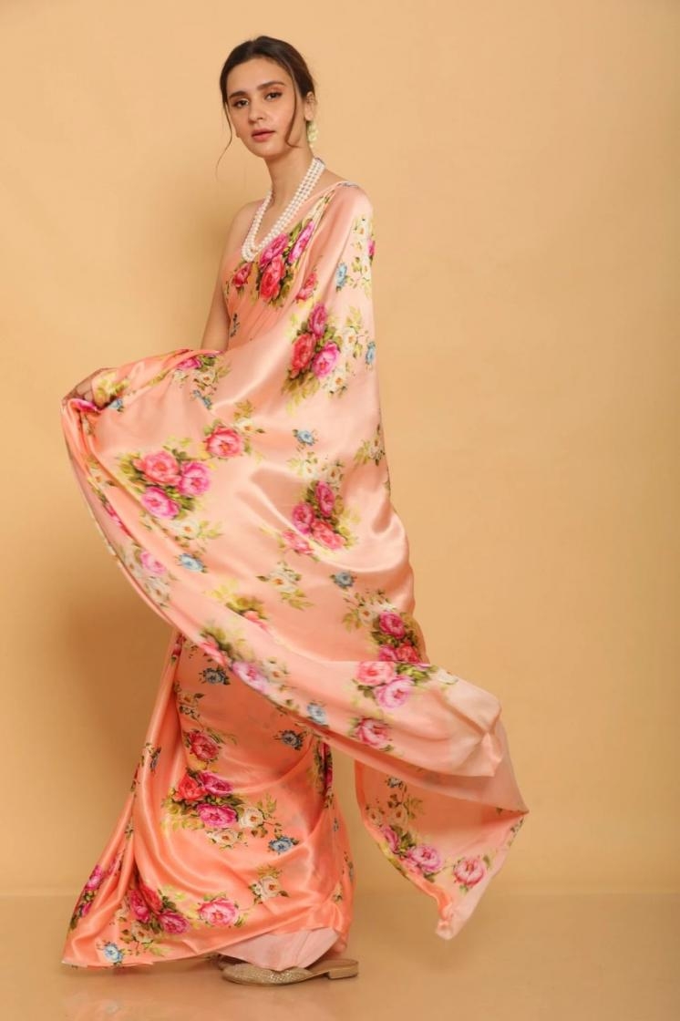 Collection of Satin,Pure Satin Sarees in Floral prints.💯