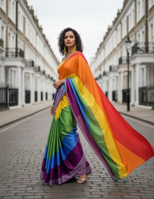 Embrace the vibrant spirit of Holi in this stunning, rainbow-striped satin saree, perfect for the festival of colors. The smooth fabric and brilliant hues make it a festive and eye-catching choice for your celebrations. YSC2201MLTCLR Blouse