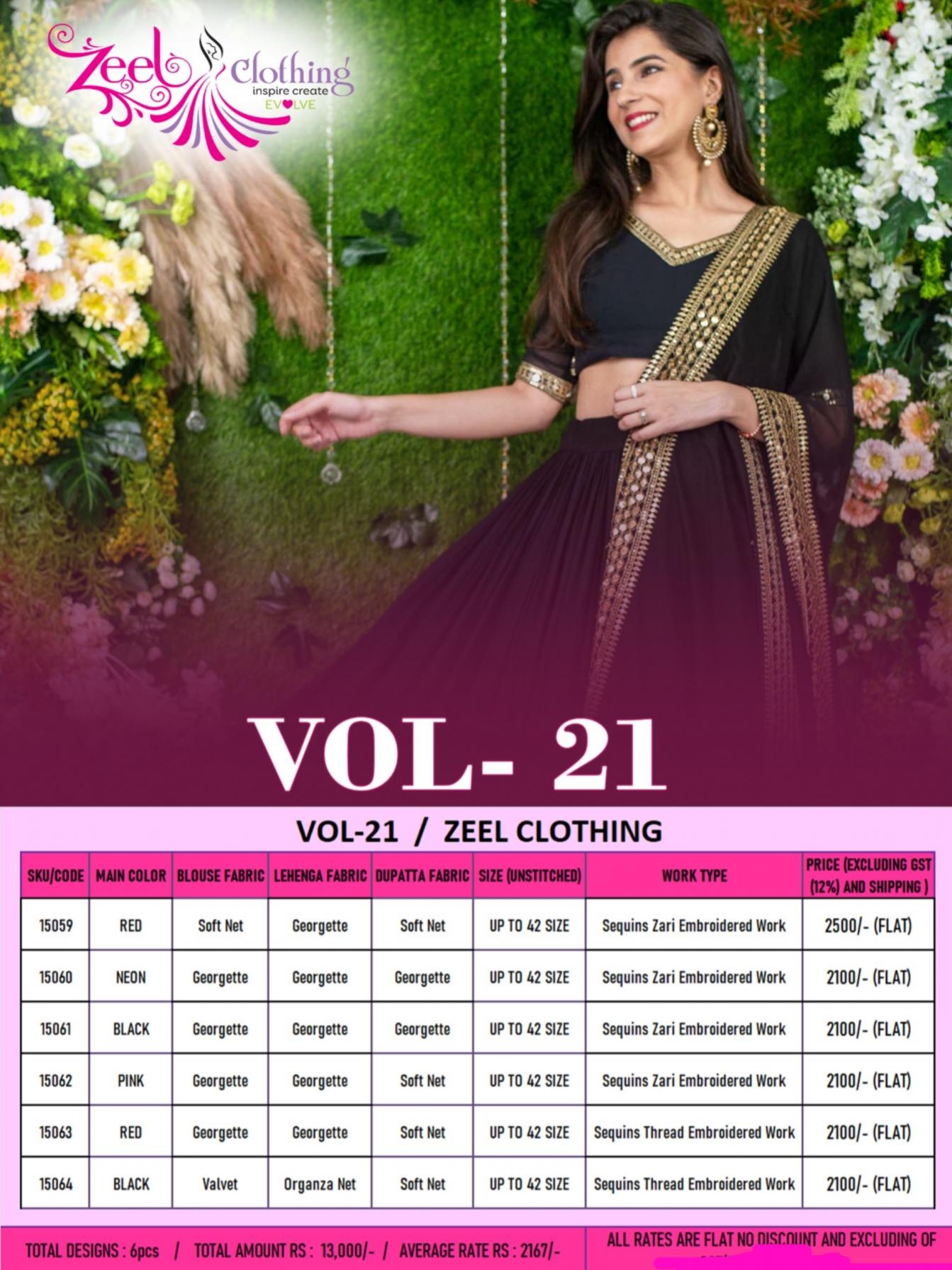 | Name: | Zeel Clothing Zeel Vol 21 Series 15059-15064 Georgette Wholesale Lehenga | |
