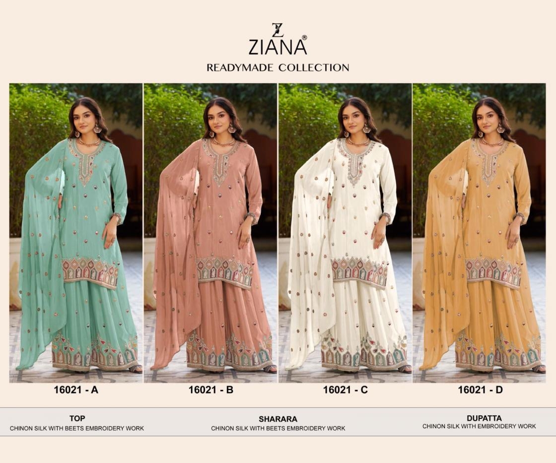 | Name: | Ziana 16021 A To D Chinon Silk Beets Work Full Stitch Pakistani Combo Sharara Suits In Wholesale Surat |