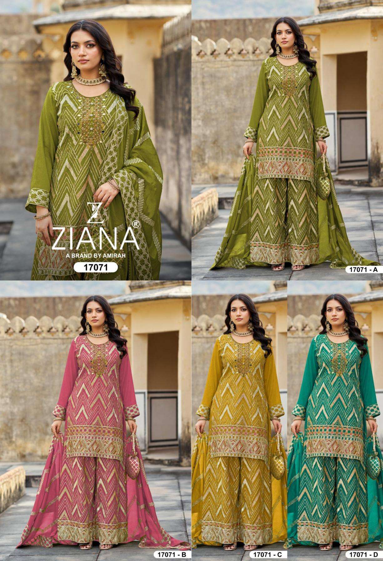 | Name: | Ziana 17071 Full Stitch Chinon Silk Sharara Wholesale Suit In Surat |
