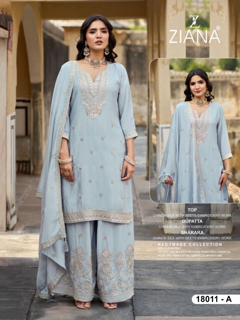 | Name: | Ziana 18011 Fashionable Chinon Silk Sharara Kurti With Dupatta |