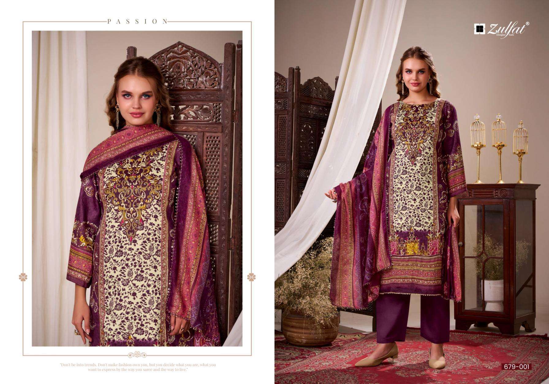 | Name: | Zulfat Hania Series 679001-679004 Jam Cotton Satin Wholesale Suit |