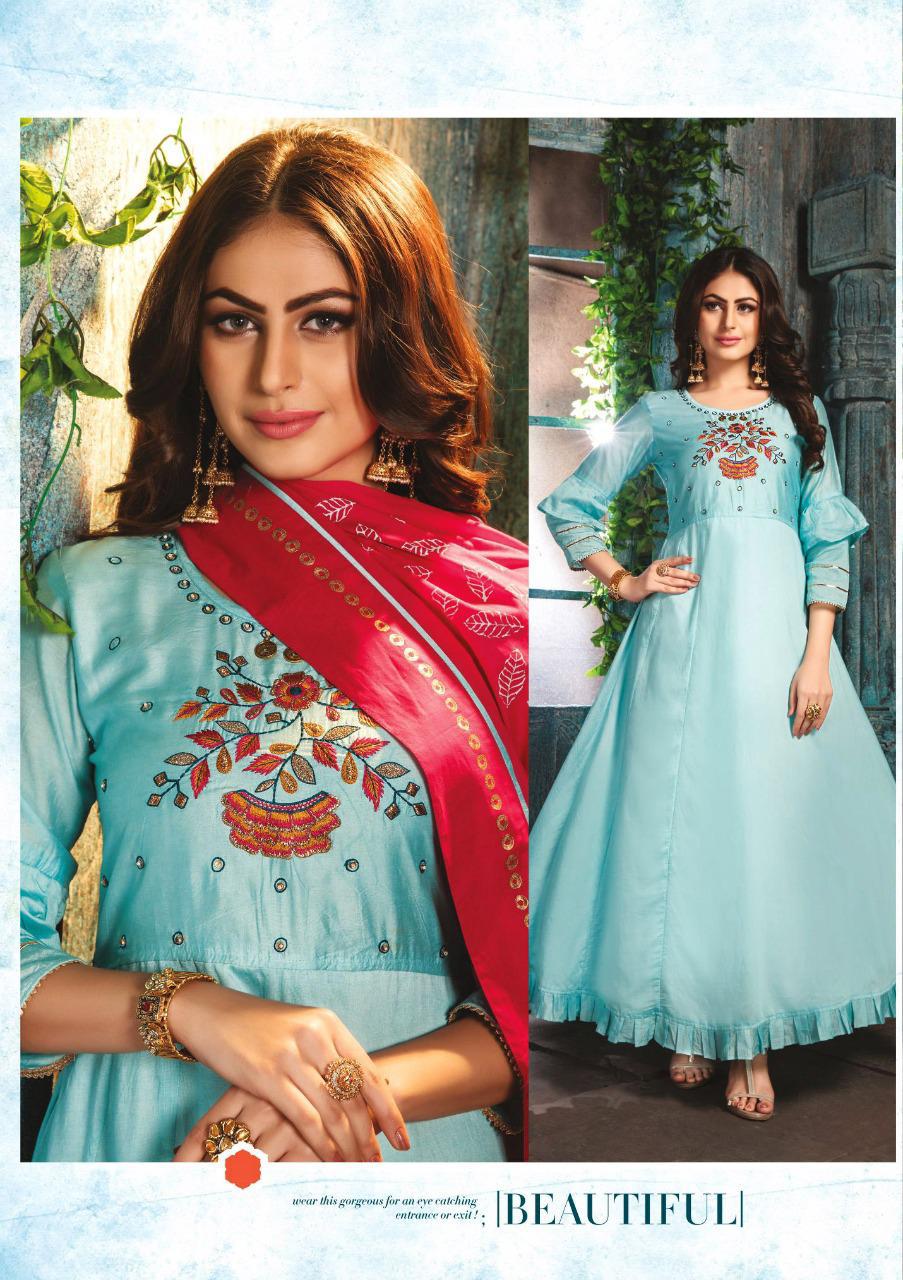 | Other Details: | The Test of Premium Collection Wedding collection Kiana house of fashionCatalogue Name- New series ZUMKHA VOL-2 ✨Details Fabrics :- Fancy Chanderi Floor length long kurti ( with embroidery work ) With duppata block print Size :- M(19) L(20) XL(21) XXL(22) 3xxl(23) Limited addition |